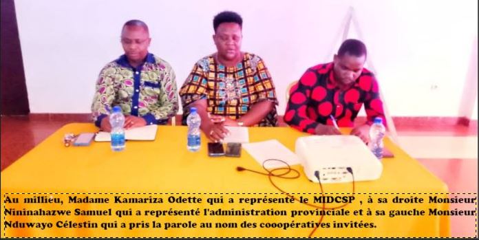L’ouverture de l’atelier a été assurée par Madame Kamariza Odette qui a représenté le Ministere de l'Intérieur, du Développement Communautaire et de la Sécurité Publique. Toutefois, avant son intervention, Monsieur Nininahazwe Samuel, conseiller socioéconomique du Gouverneur de Gitega, a pris la parole pour accueillir les participants, suivi par Monsieur Nduwayo Célestin, qui a pris la parole au nom des coopératives invitées pour retracer leur parcours en mettant l’accent sur les forces et faiblesses, opportunités et menaces auxquelles elles font face.