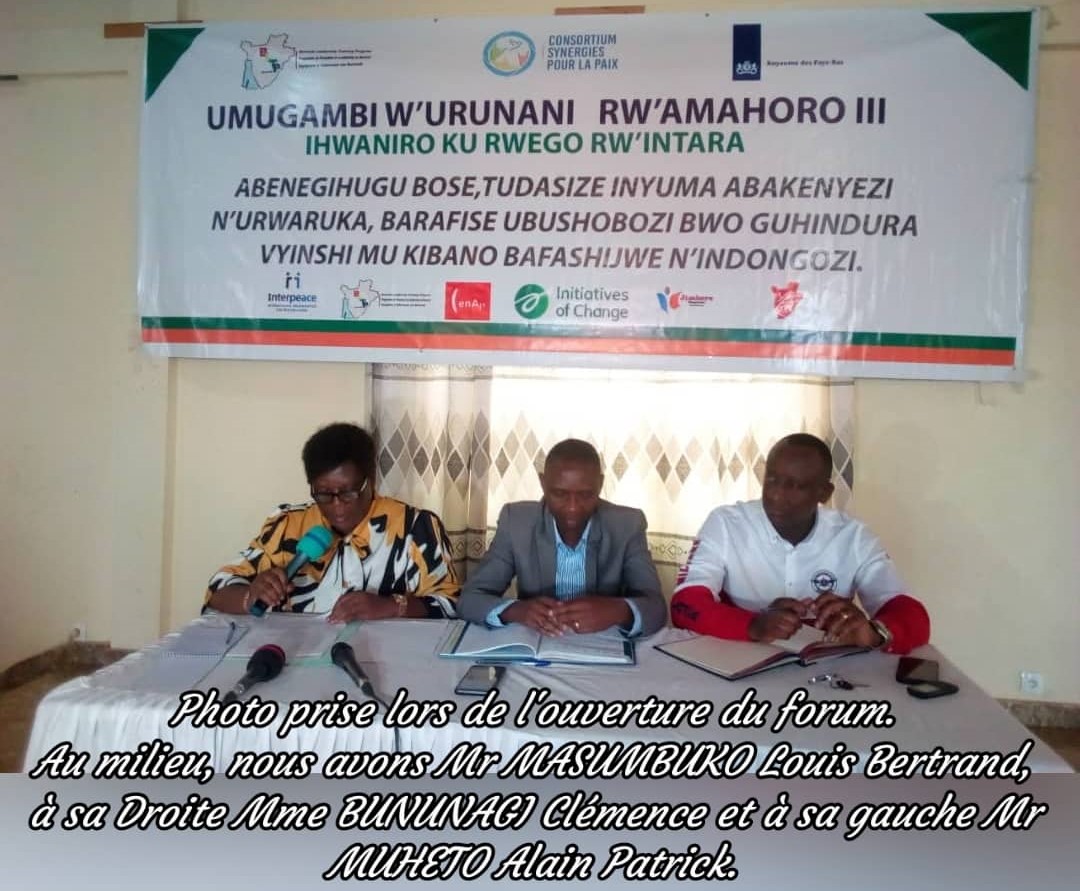 Dans le cadre du projet Synergies pour la Paix au Burundi (SPB), phase III, des plateformes multipartites ont été mises en place et ont bénéficié de formations et d'appuis techniques et finanicers dans le but de leur permettre de mettre en œuvre des activités (des projets) visant à répondre à une ou plusieurs priorités pour la paix, la démocratie et le développement économique. Ces plateformes ont alors élaboré des plans d’actions qu’ils ont mis en œuvre à travers des projets soutenus techniquement et financièrement par les organisations qui travaillent en consortium pour la mise œuvre du projet [(Burundi Leadership Training Program (BLTP), Centre d’Alerte et de Prévention des Conflits (CENAP), Initiative et Changement Burundi (ICB), AJEBUDI-Yaga et Association des Éditeurs du Magazine Jimbere (ASSEMAJI)]
